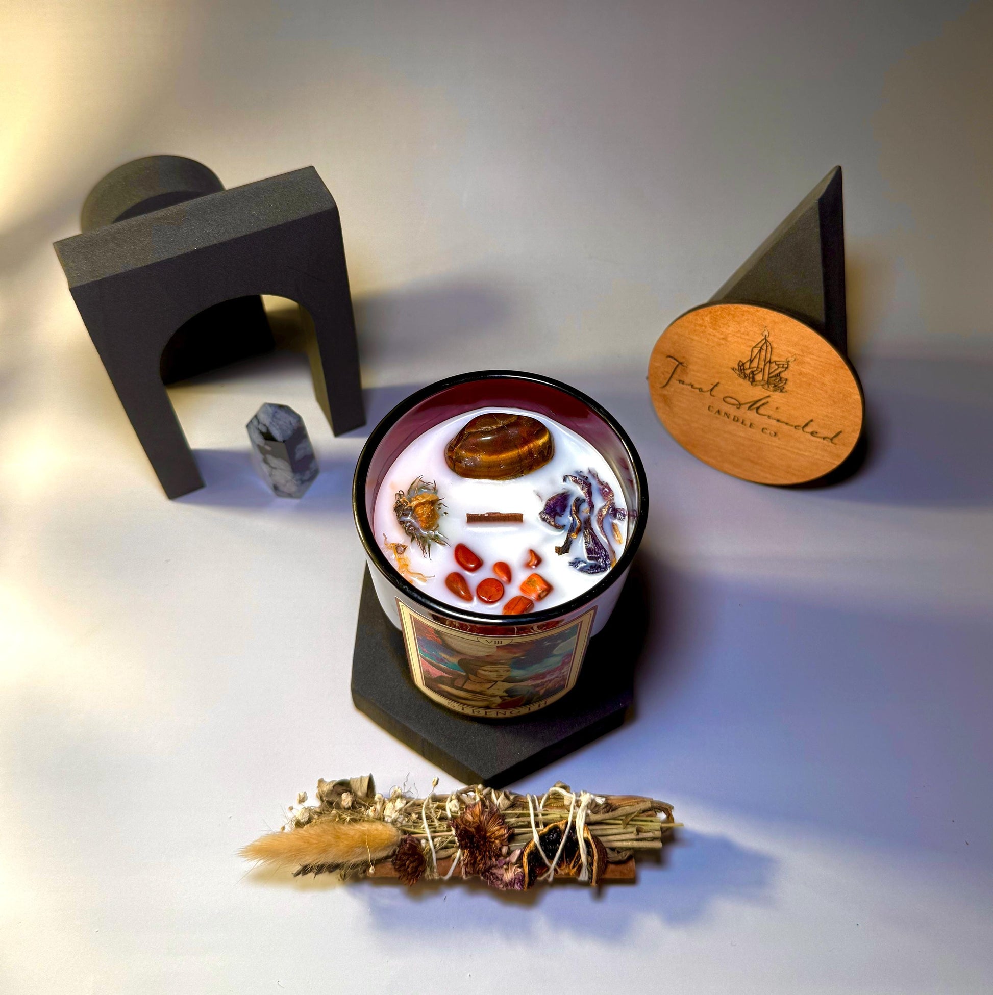 Step into your power with Strength—a bold, grounding candle inspired by the Major Arcana's embodiment of quiet courage and inner mastery. 🌿🔥